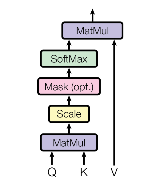 where the scaling factor is present to provide numerical stability, see a graphical representation BELOW [@vaswaniAttentionAllYou2017].