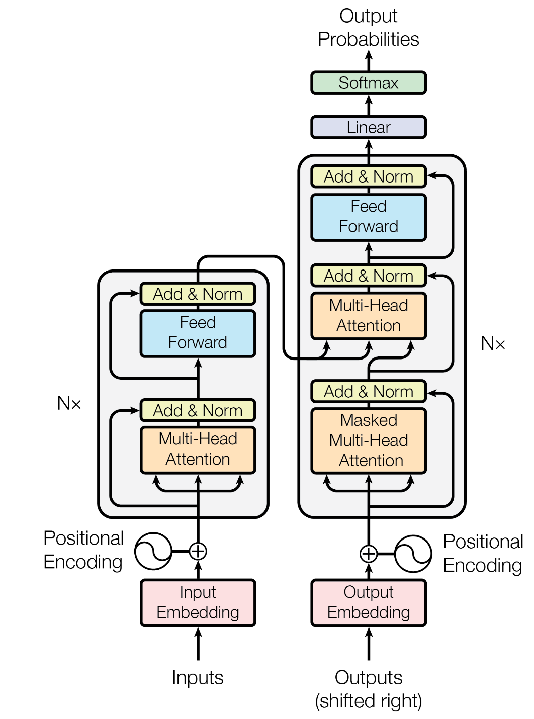 The transformer architecture stacks alternating attention and feed-forward (linear) blocks in multiple layers, see BELOW.